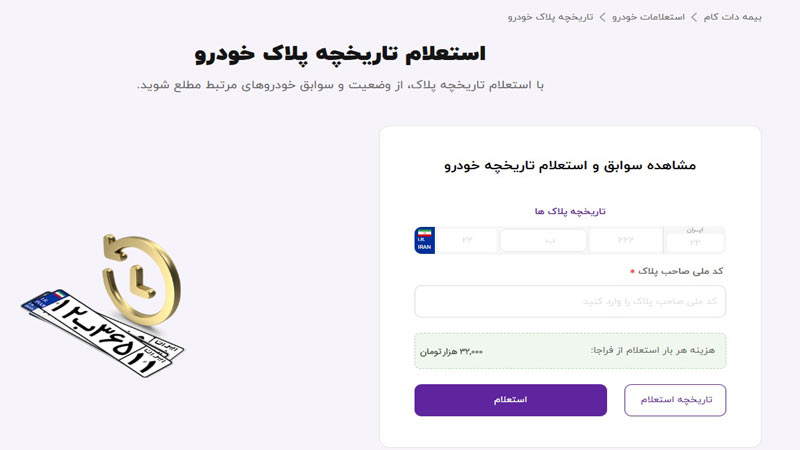 - انتخاب گزینه «استعلام تاریخچه پلاک»